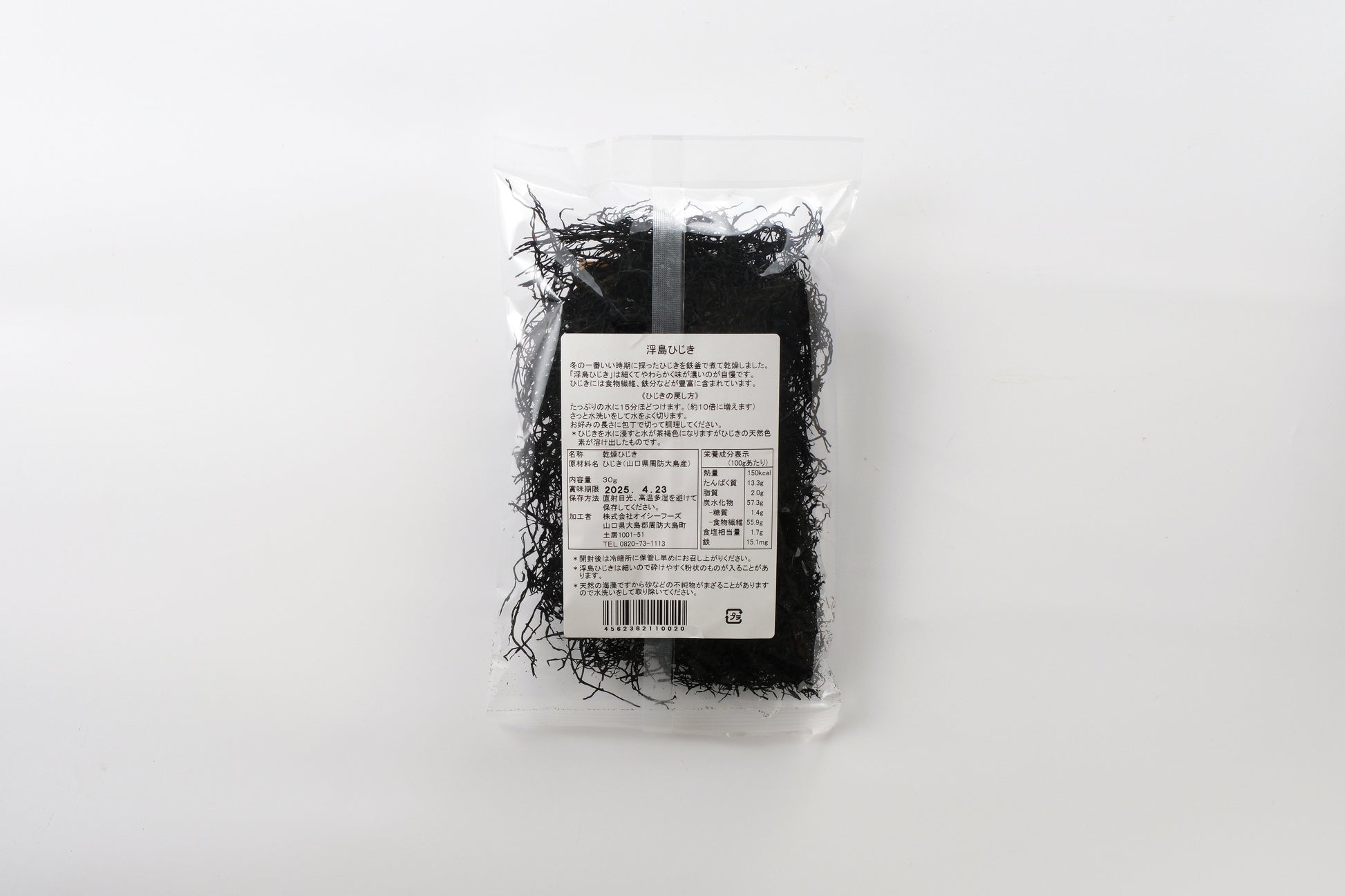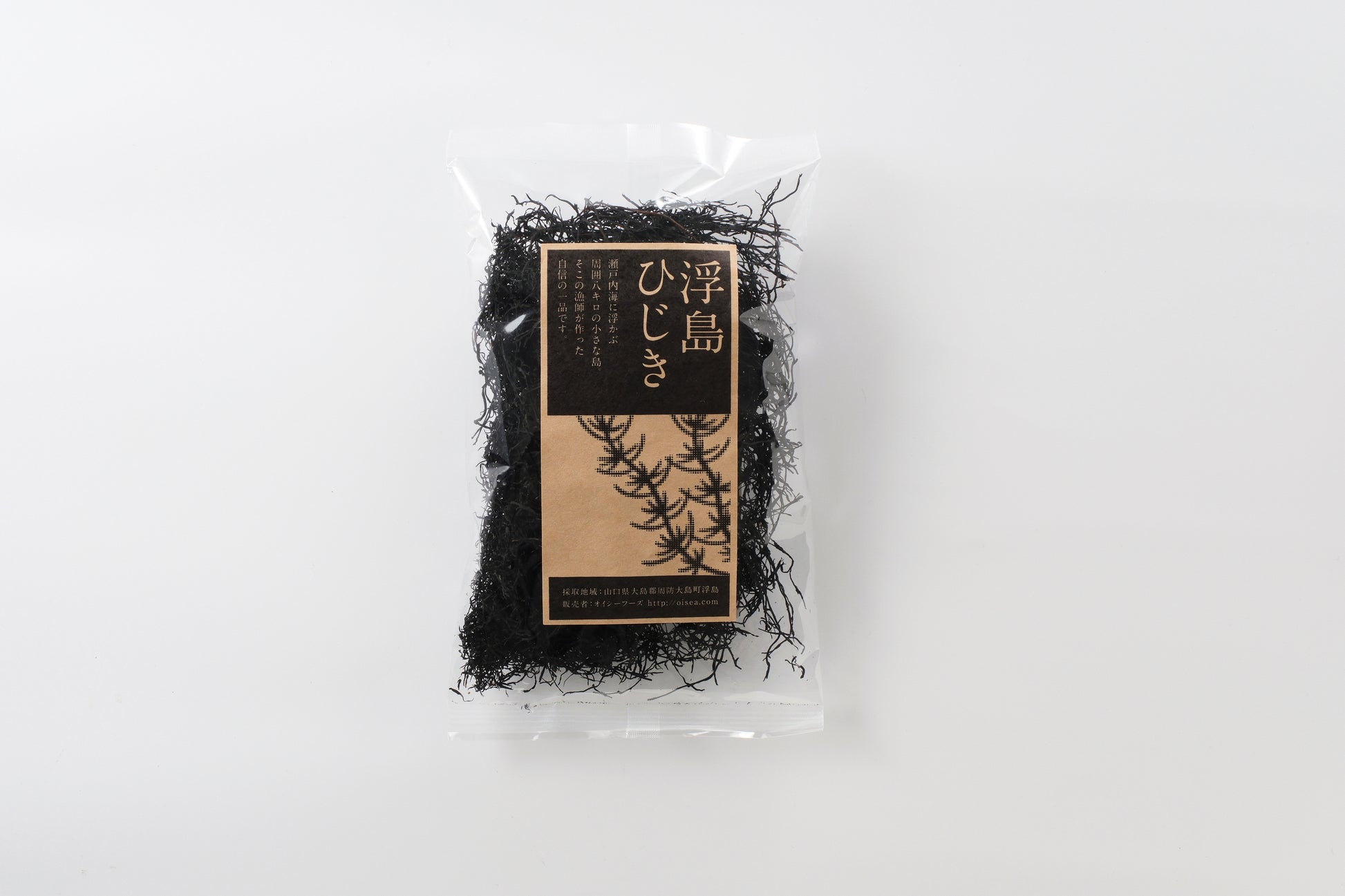山口県周防大島産の「浮島ひじき」です。細くてやわらかい上質なひじきで、味が濃いのが特徴です。